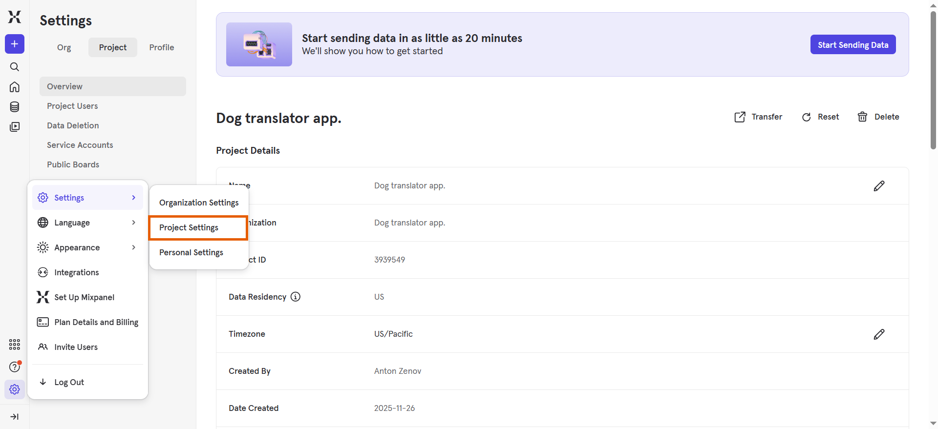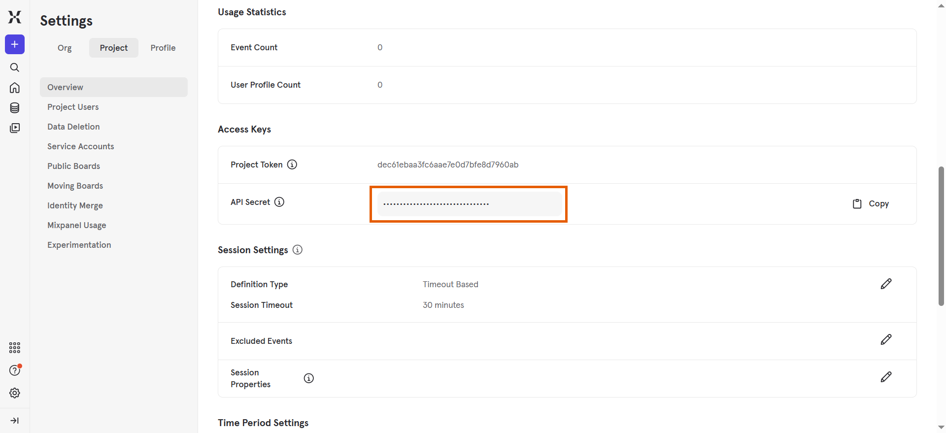 - Go to Settings > Project Settings in your Mixpanel dashboard.