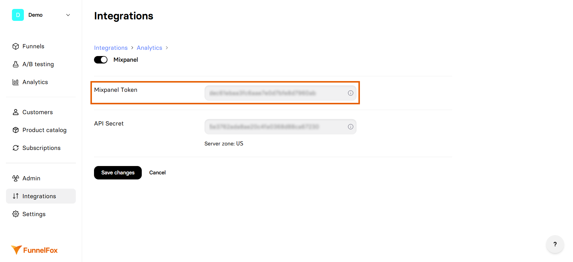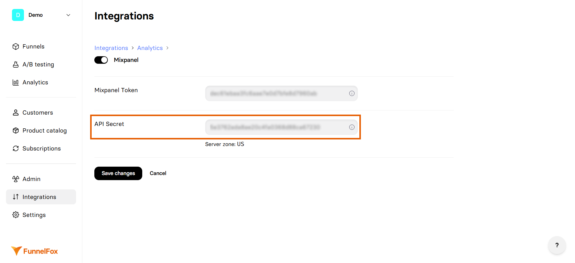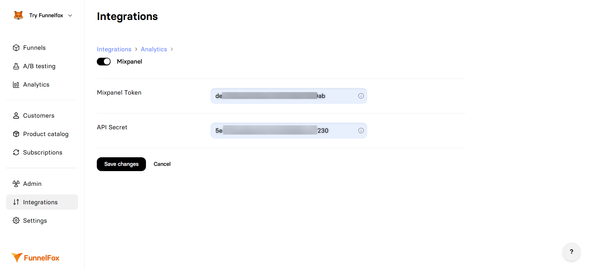 - Go back to the Mixpanel integration settings in FunnelFox.