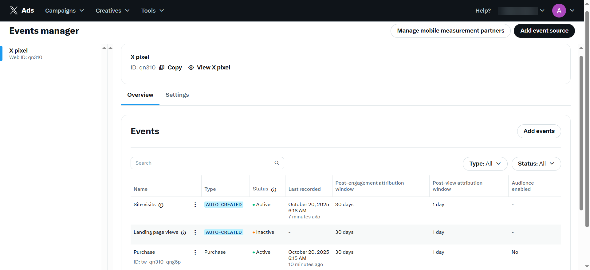- X Pixel event tracking